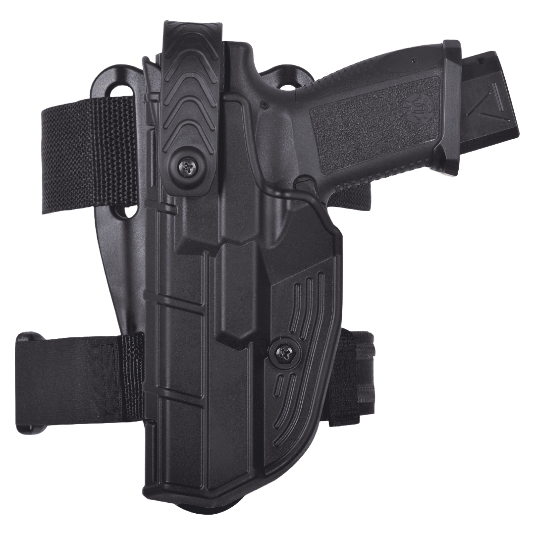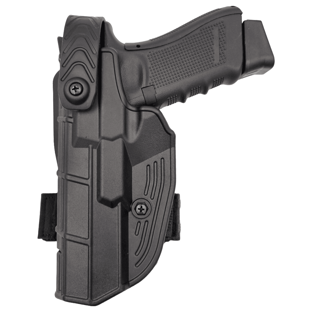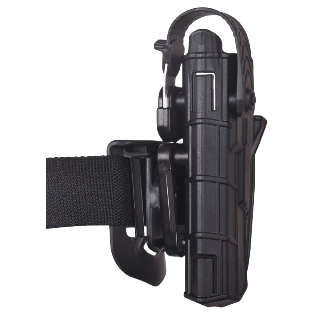 Toc pistol Glock conceput pentru a oferi o potrivire ergonomică, adaptată formei corpului, permițând purtarea confortabilă chiar și pe durata turelor lungi sau a operațiunilor prelungite. Sistemul de prindere este ajustabil, ceea ce permite utilizatorului să regleze poziția tocului în funcție de preferințele personale și nevoile operative. Acest aspect este esențial pentru a asigura o tragere rapidă și eficientă a pistolului, atunci când situația o impune.