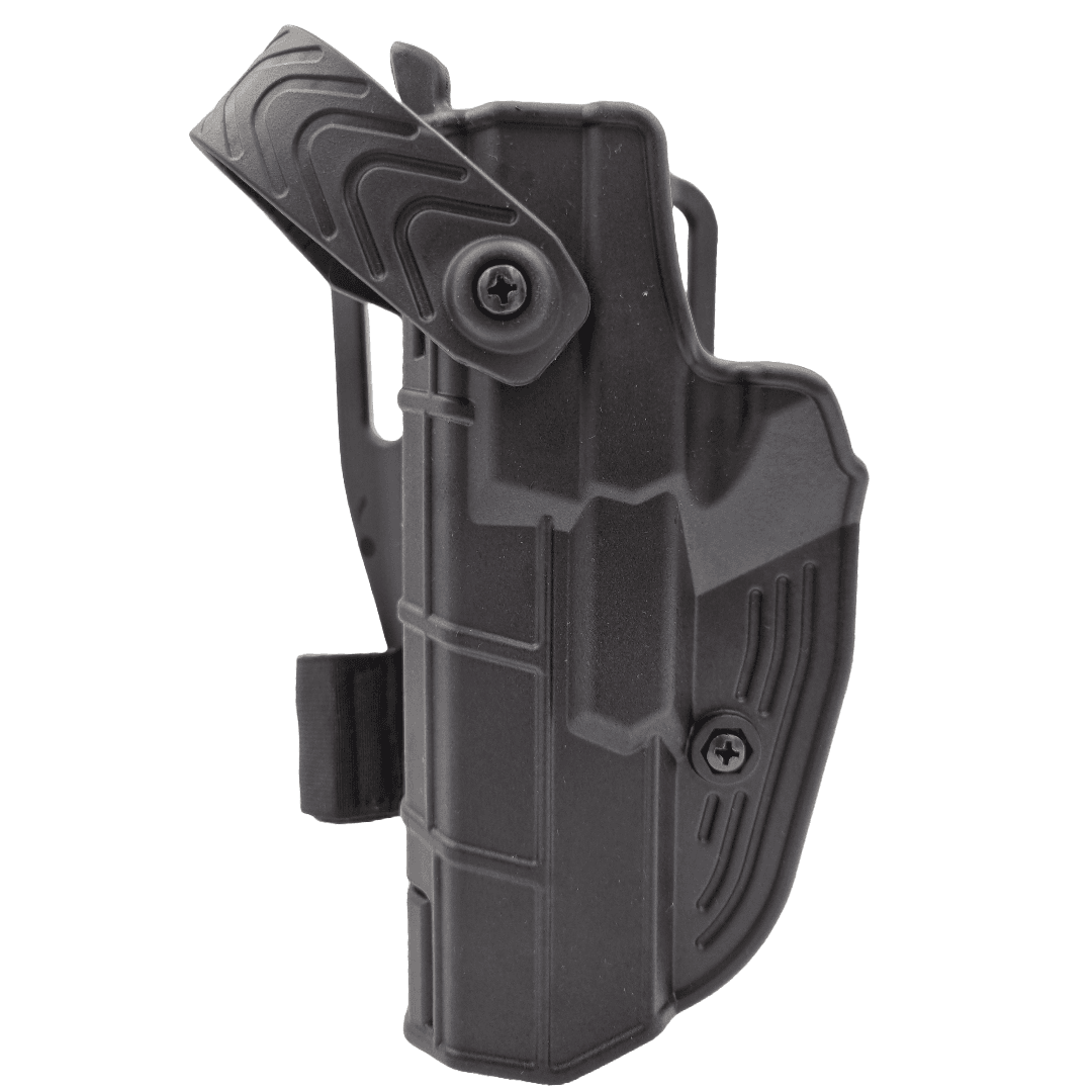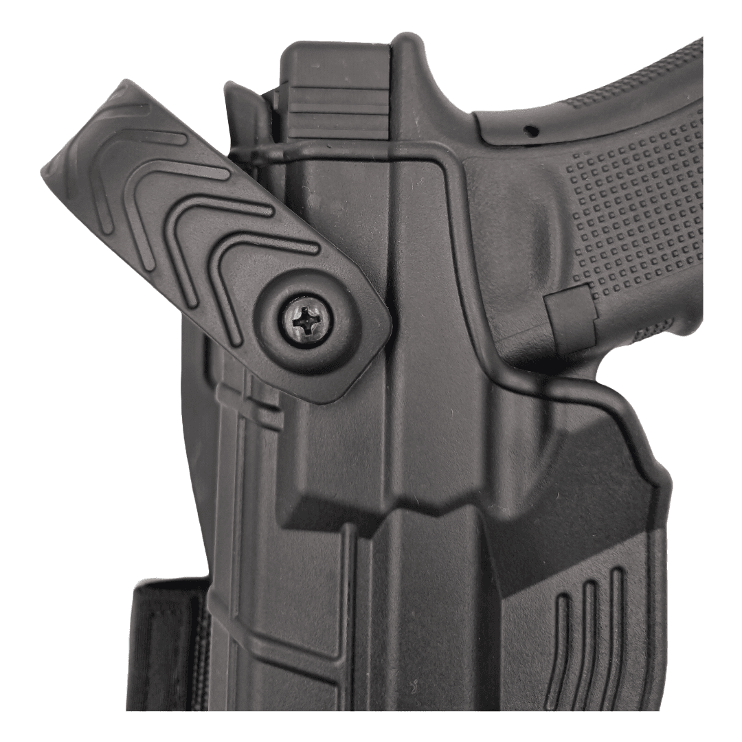 O caracteristică esențială a acestui toc pistol Glock este nivelul ridicat de retenție și siguranță pe care îl oferă. AKAR® DUTY Lvl. III este echipat cu un mecanism de retenție automată, care asigură blocarea pistolului în toc imediat ce acesta este introdus. Acest mecanism oferă utilizatorului un plus de siguranță, prevenind pierderea accidentală a armei sau accesul neautorizat.