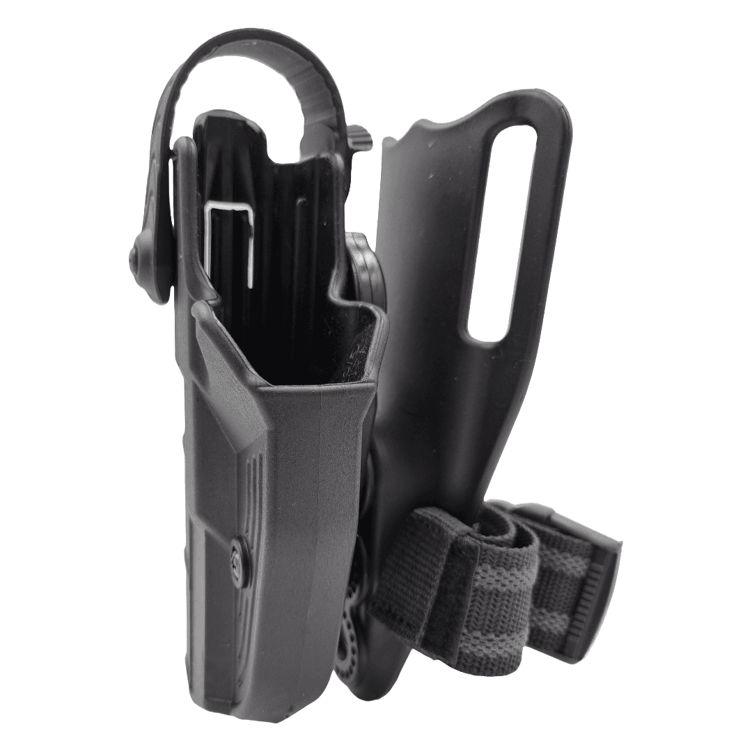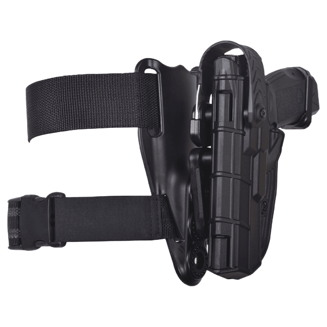 Toc pistol Glock AKAR® DUTY Lvl. III este destinat portului armei pe centură, cu prindere joasă și fixare pe picior.