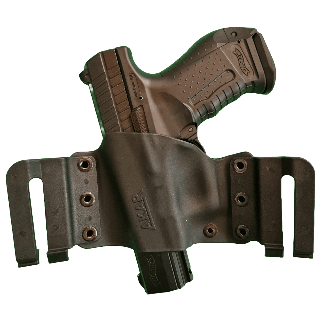 Toc pistol AKAR® SCORPION OWB, realizat din kydex de înaltă calitate, este un accesoriu esențial pentru orice profesionist din domeniul forțelor de ordine, agenți de securitate sau pasionați de arme care caută o soluție de port sigură, durabilă și confortabilă. Proiectat pentru a accepta o gamă largă de pistoale, inclusiv cele de la producători renumiți precum Glock, Beretta, CZ, HS și alte modele similare în calibrul 9mm/45ACP, acest toc pentru pistol oferă retenție pasivă eficientă și un design ergonomic care asigură o accesibilitate rapidă și sigură la armă în orice moment.