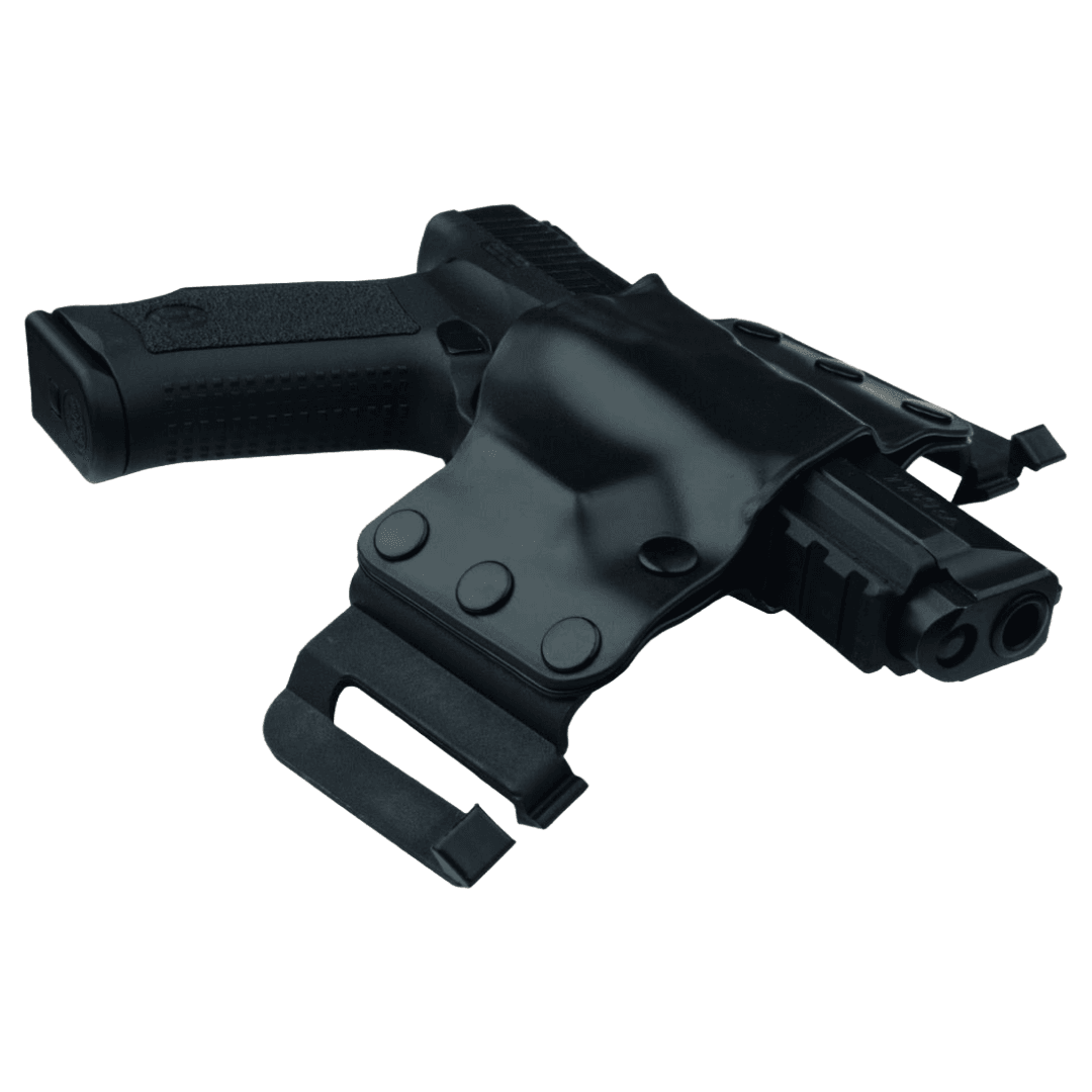 Unul dintre punctele forte ale acestui toc pistol este compatibilitatea extinsă cu o gamă largă de pistoale. Tocul este conceput pentru a se potrivi perfect cu modelele din gama Glock, Beretta, CZ, HS și alte pistoale similare în calibrul 9mm, oferind astfel o soluție versatilă pentru profesioniști sau civili care folosesc diverse modele de arme. Această adaptabilitate îl face ideal pentru utilizatorii care preferă să schimbe armele în funcție de context, fără a fi nevoie să achiziționeze tocuri separate pentru fiecare model în parte.